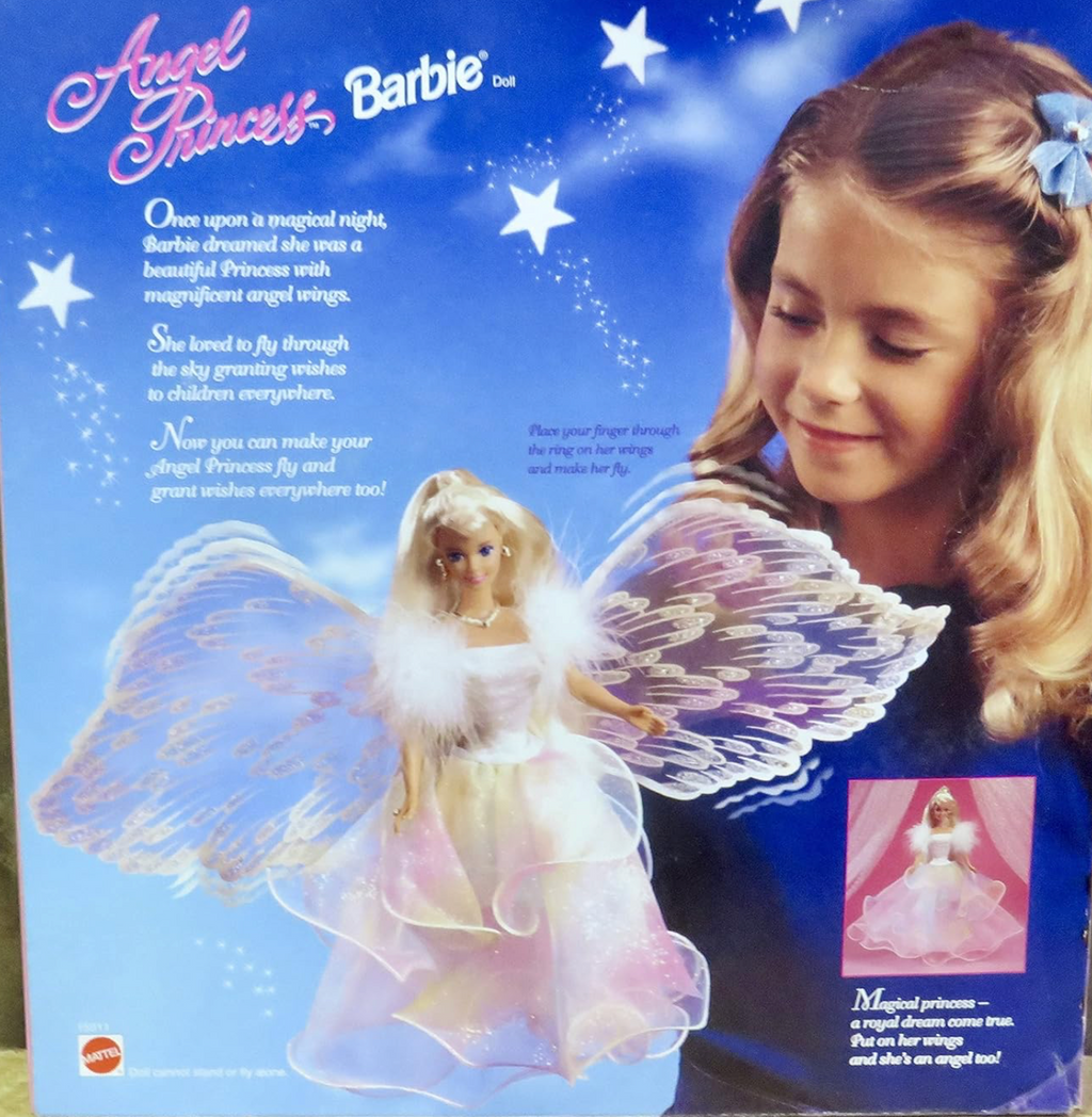 Experience the magic with the Angel Princess Flying Barbie Doll from 1996 by Mattel. This NRFB (Never Removed From Box) collectible features a beautiful angel costume and the ability to fly with a push of a button. Perfect for Barbie and doll collectors alike.