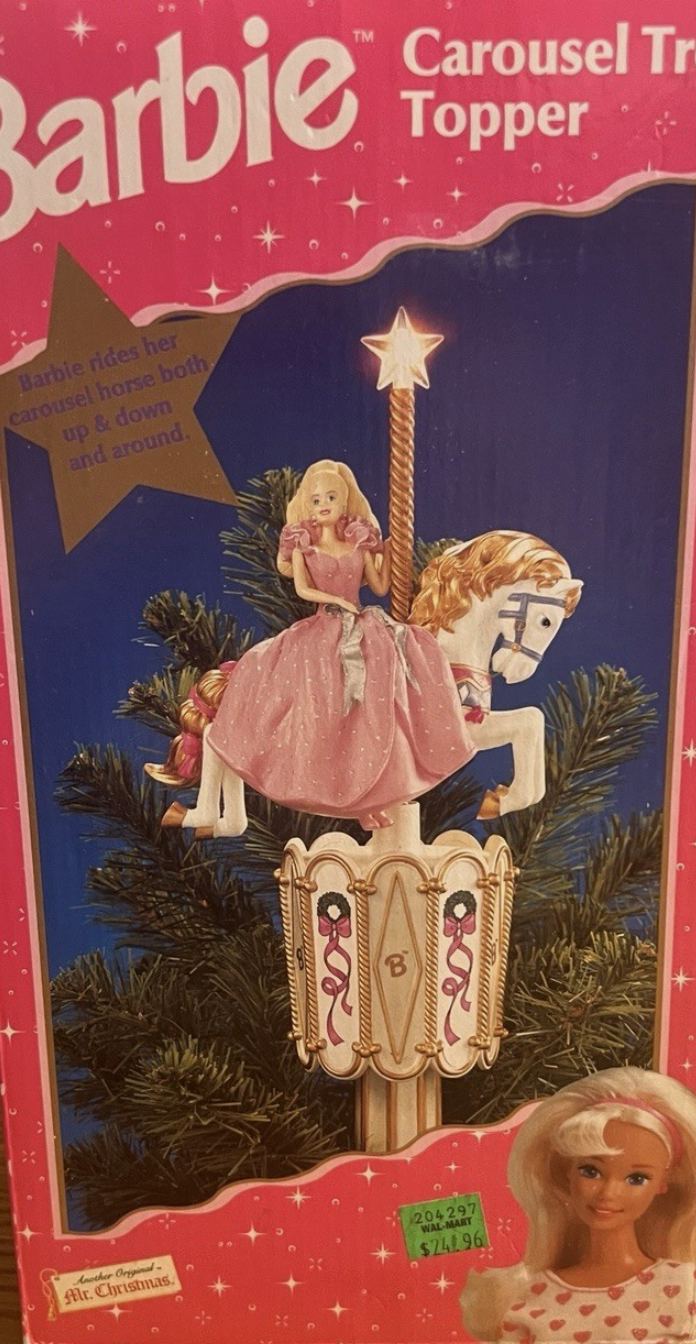 The Barbie Carousel Christmas Tree Topper from 1997 by Mr. Christmas Inc. (model 49501) is a collector’s gem that adds vintage charm to any holiday decor. Featuring intricate carousel detailing combined with the iconic Barbie theme, this tree topper delivers both nostalgic appeal and timeless elegance. Its classic design offers a delicate centerpiece atop your Christmas tree, enhancing the festive atmosphere with expert craftsmanship guaranteed to impress enthusiasts and collectors alike.