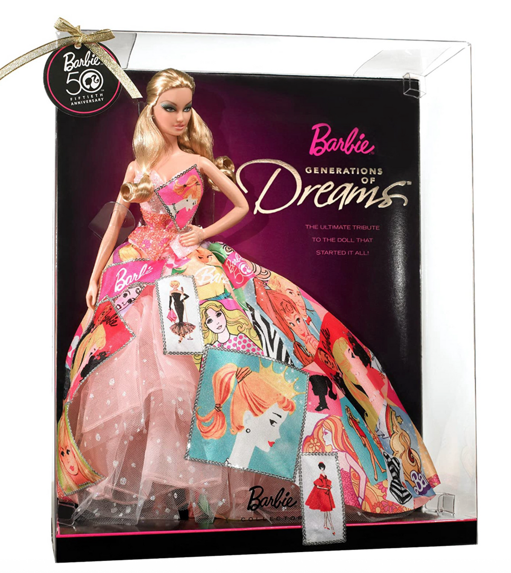 The Barbie Pink Label - Generations of Dreams Collector's Doll celebrates decades of inspiration and imagination in one elegant design. Crafted with meticulous detail, this collectible embodies Barbie’s evolving style and spirit through the years. Perfect for enthusiasts and collectors, it offers a timeless piece that honors Barbie’s cultural impact while showcasing refined craftsmanship for display or preservation.