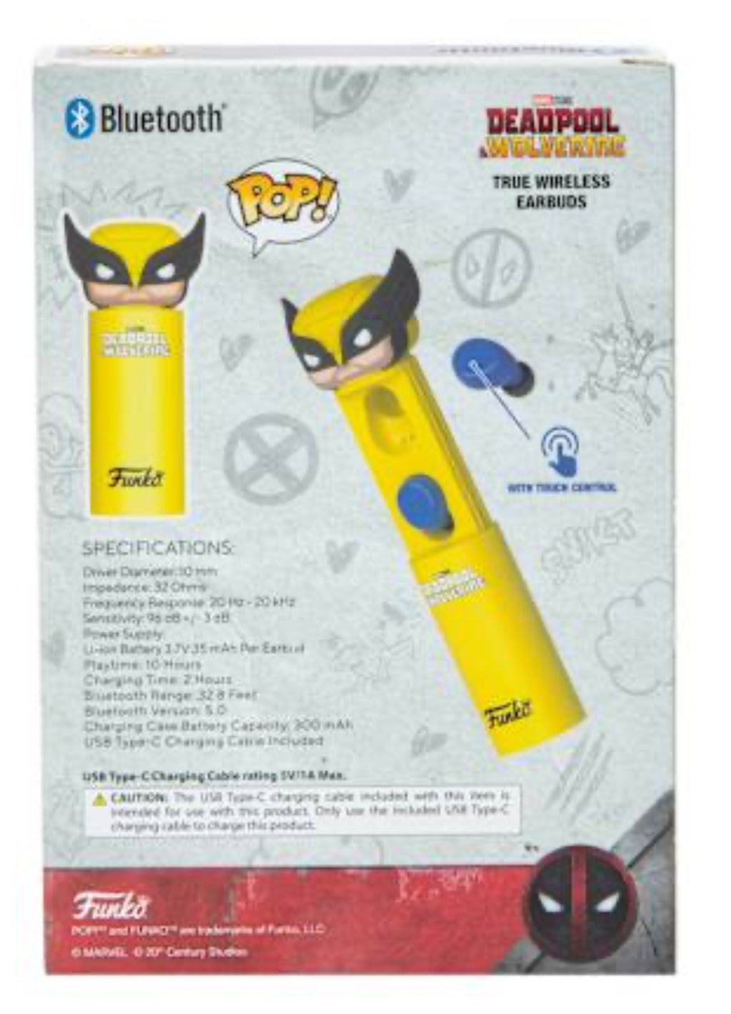 Experience ultimate sound quality with the Deadpool & Wolverine True Wireless Earbuds. These sleek and stylish earbuds feature the iconic Wolverine design and provide wireless freedom, perfect for on-the-go use. With advanced technology and high-quality sound, these earbuds are a must-have for any fan of Deadpool and Wolverine.