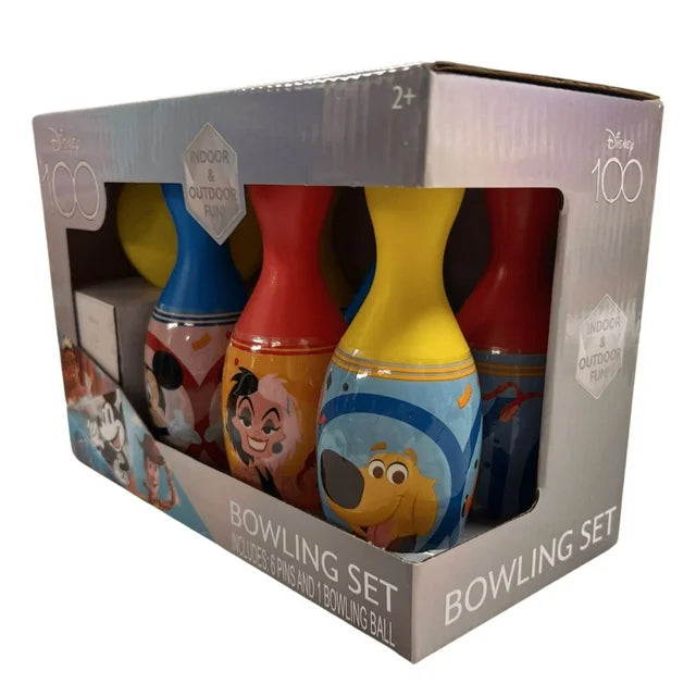 Disney 100 Bowling Set includes 6 Pins and 1 Bowling Ball