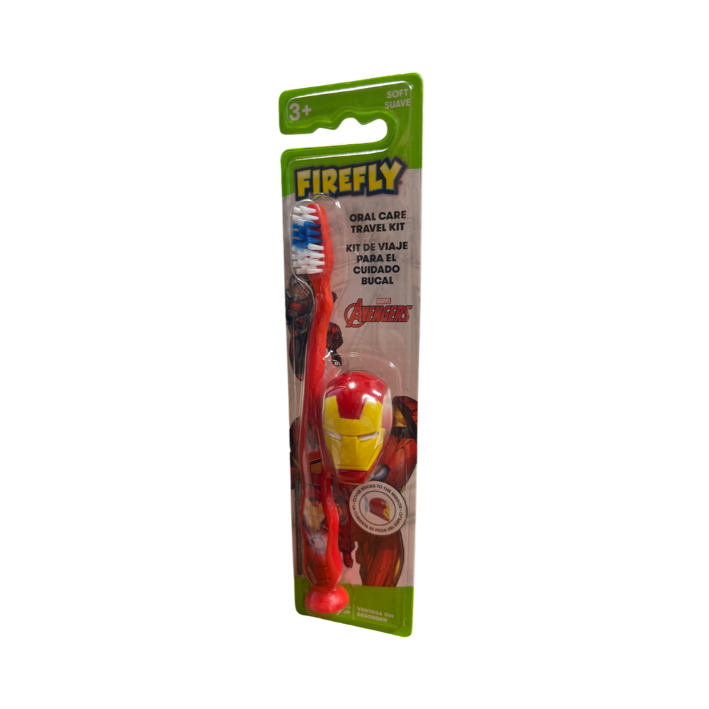 About this item Marvel Avengers Children's Toothbrush Easy-grip contoured handle with 30 tufts of soft, end-rounded bristles for gentle, effective cleaning Suction cup on the back of the Iron Man-styled cap sticks to wall