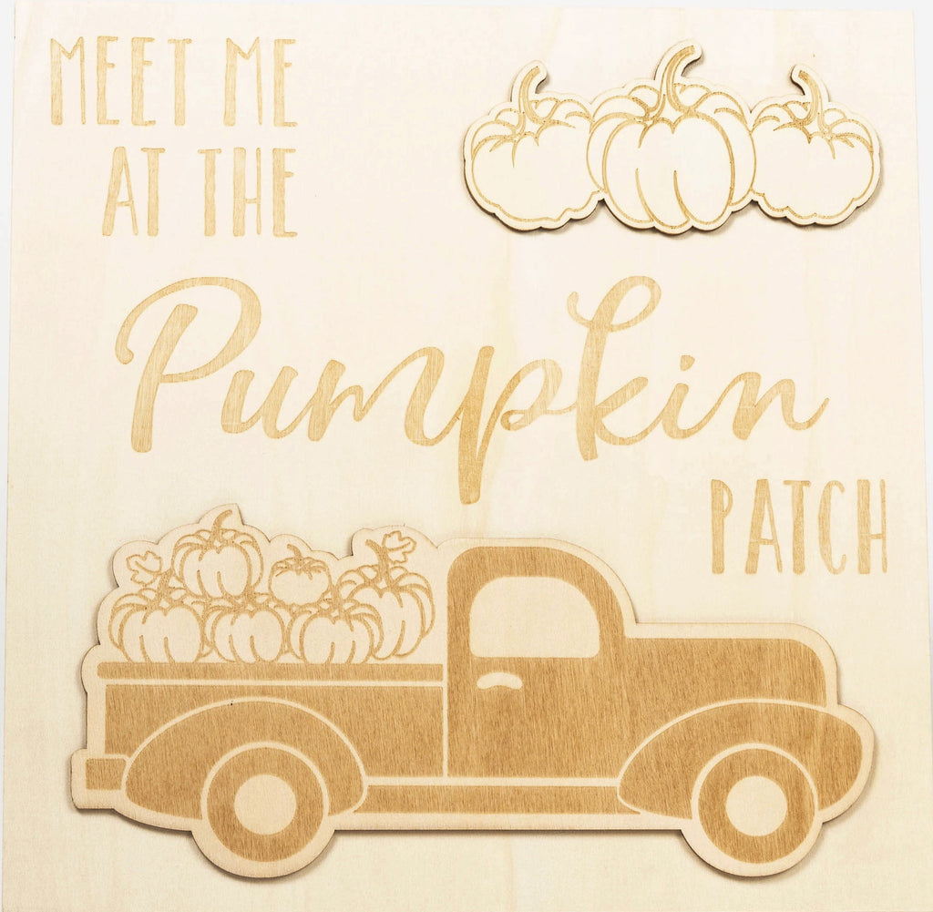 - COZY DESIGN - This harvest wood plaque features a pickup truck carrying a load of pumpkins with the phrase "Meet Me At The Pumpkin Patch" written in a festive font as well as 3D embellishments