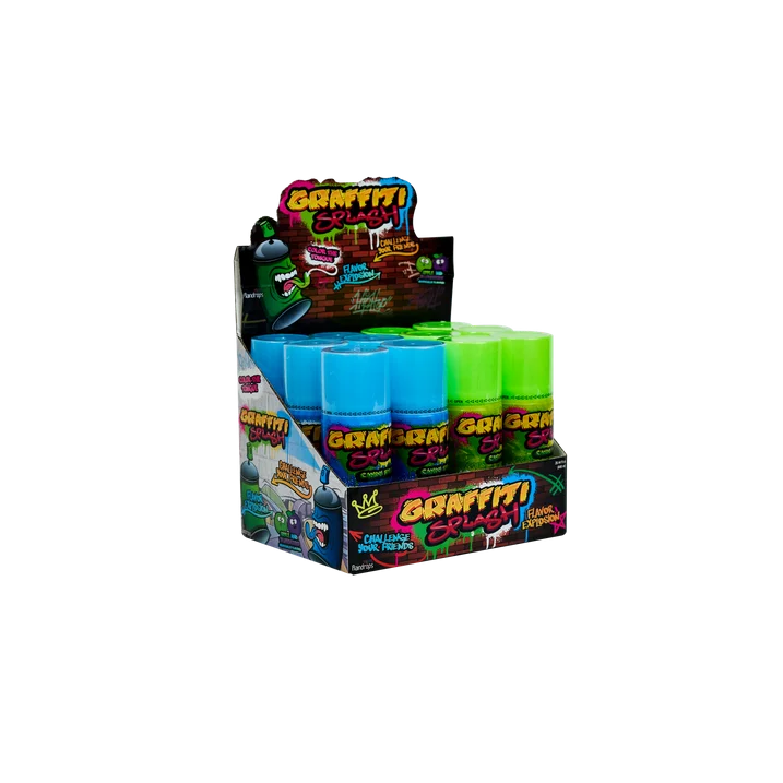 Raindrops is all about the funnest candy, and Graffiti Splash is the number one item for a reason. Treat your tongue to some tasty graffiti and spray on the fun with this delicious liquid candy! Just pop the top and spray Graffiti Splash into your mouth and experience a flavor explosion! Graffiti Splash Candy Spray comes in two awesome flavors: Apple and Blueberry. Challenge your friends to try Graffiti Splash and color your tongue!