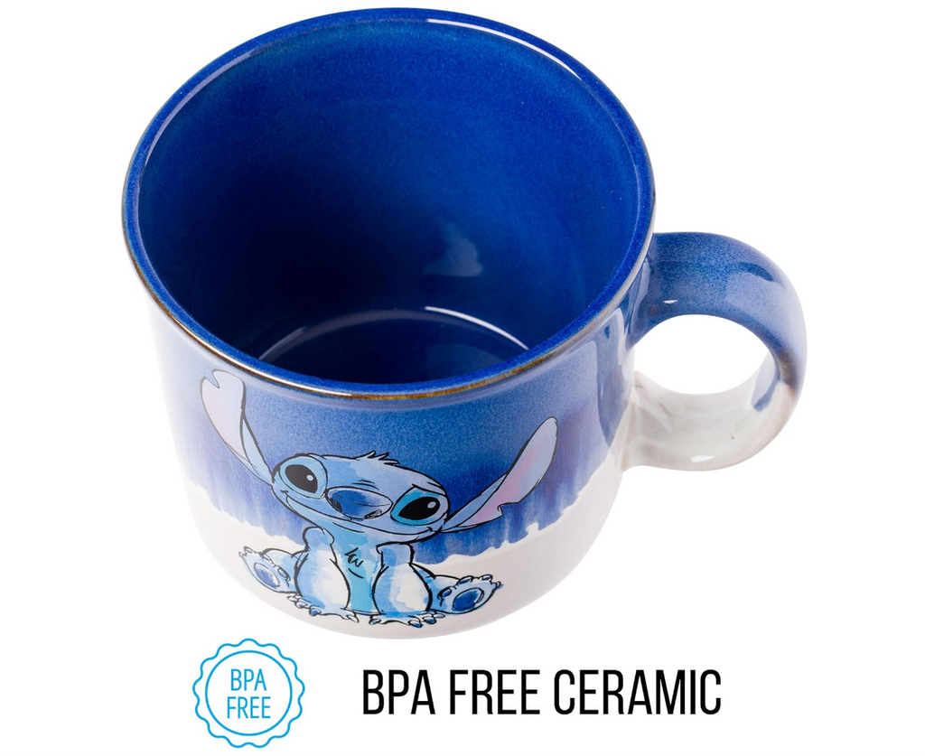 Experience the warmth of Ohana with the Silver Buffalo Disney Lilo and Stitch Camper Mug. Crafted with reactive glaze ceramic, this 20 ounce mug features the iconic phrase "Ohana means family" and a charming design of Lilo and Stitch. Enjoy your favorite hot beverages while celebrating the bond of family.