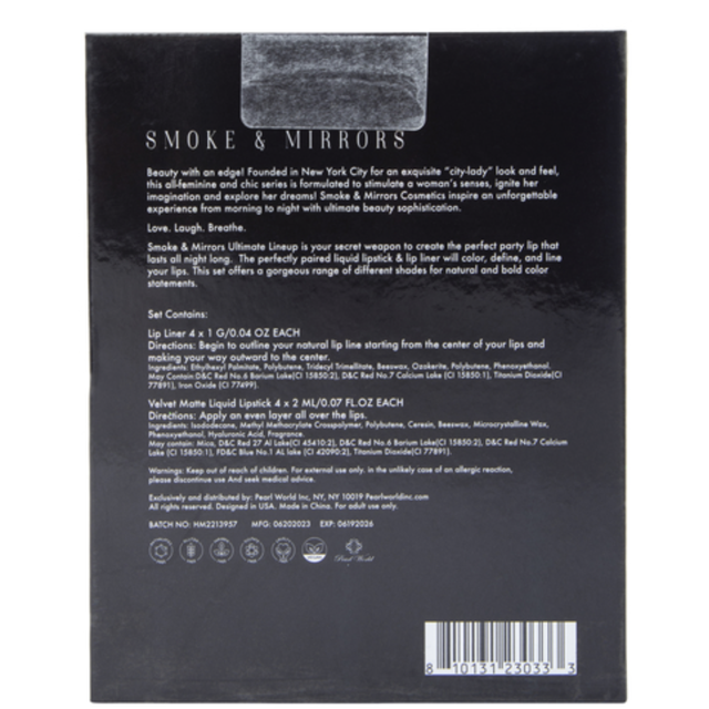 Smoke & Mirror Ultimate Lineup 4 pc Lip Liner and 4 pc Velvet Matte Liquid Lip Stick