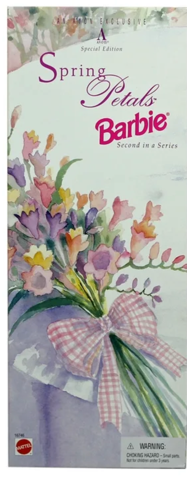 The Spring Petals Barbie Doll Blonde is the second collectible in Avon’s exclusive series, showcasing timeless elegance and detailed craftsmanship. Featuring a delicate spring-inspired ensemble and expertly styled blonde hair, this special edition doll is designed for collectors who value artistry and exclusive releases. Perfectly suited for display, it captures the charm of the season with refined sophistication.