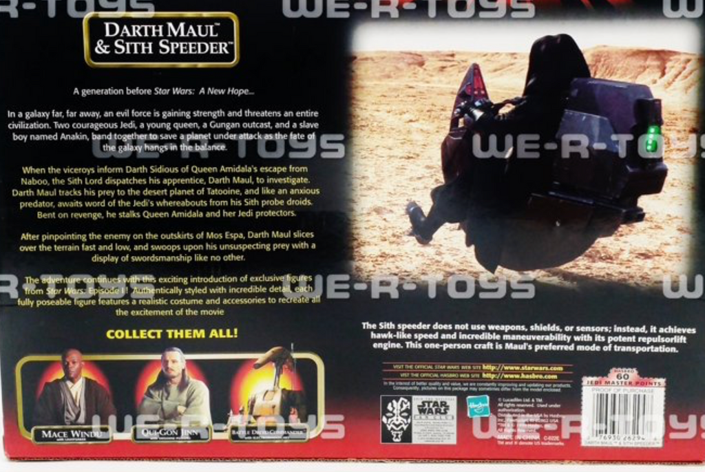 The Star Wars Episode I Darth Maul & Sith Speeder Set by Hasbro, released in 1999, is a highly collectible item preserved in near-perfect condition (NRFB). This set features the iconic Sith Lord Darth Maul figure paired with his sleek Sith Speeder, capturing the essence of the film’s intense action. Designed with detailed sculpting and vibrant colors, this set is essential for enthusiasts seeking an authentic piece of Star Wars memorabilia from the prequel era. Ideal for serious collectors aiming to enhance their vintage Star Wars collection.