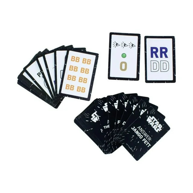 The quick-fire card game includes 76 catchphrase cards and instructions. Each card presents a Star Wars themed puzzling pictogram related to various characters and items from the franchise for you to solve. Suitable for three or more players, be the first to guess five pictograms correctly to win the game.