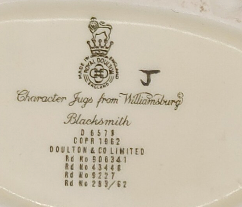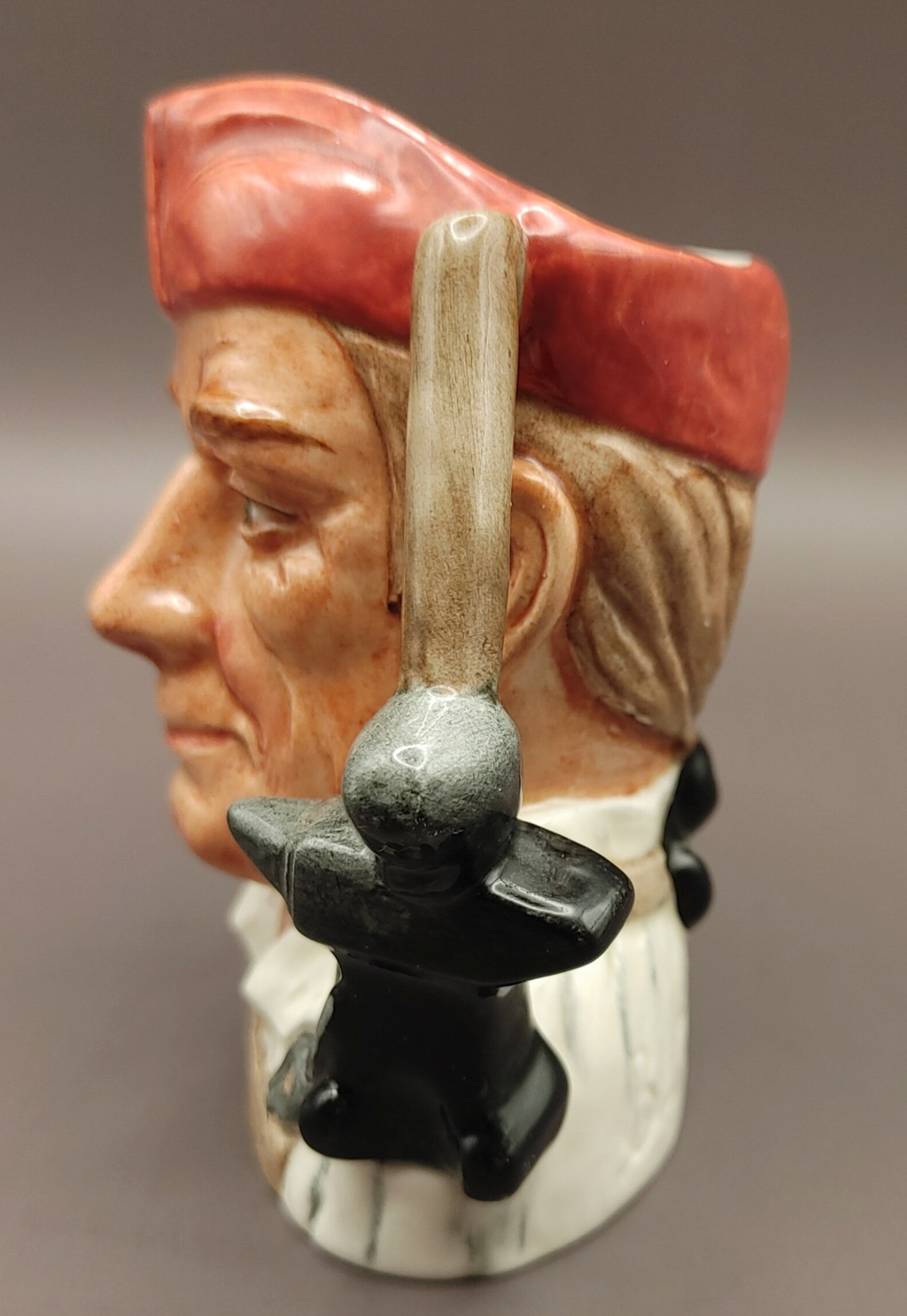 Experience a piece of history with our Vintage Royal Doulton Toby Character Jug from Williamsburg Blacksmith. Handcrafted in 1962, this small D6578 jug depicts a traditional blacksmith and is sure to add charm to any collection. Made from the finest materials using expert techniques, it's a timeless piece you don't want to miss.