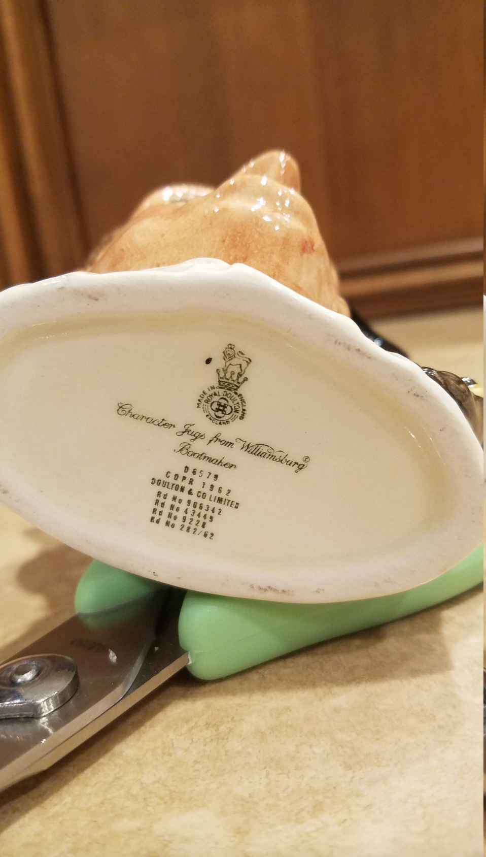 This vintage Royal Doulton Williamsburg Boot Maker Large Toby Character Jug D6579 is a collector's delight! Made in England, it showcases a traditional character in a classic design. Made with exquisite detail, this jug adds charm and sophistication to any space. A must-have for any Toby jug enthusiast.