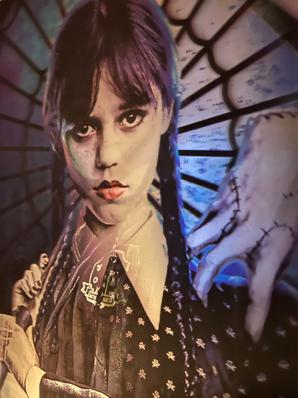 The Wednesday Addams 3D Lenticular Poster is a must-have for any fan of the iconic character. Using innovative technology, this poster presents Wednesday in stunning 3D, adding depth and dimension to any room. Bring home a piece of the Addams family with this unique and visually striking poster.